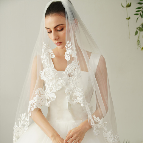 Элегантная классическая свадебная фата RESV36 с цветочным кружевом, 1 яруса, свадебная фата с гребнем