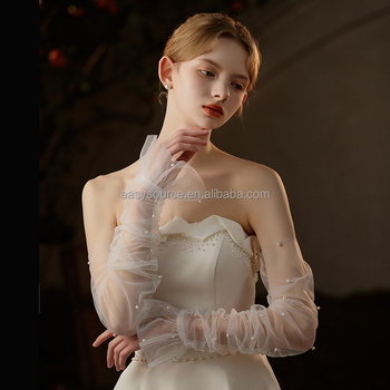 YM97 Casamento Fingerless Luvas Longas Tule Pérolas Noivas Mangas De Dama De Noiva Mulheres Casamento Acessórios